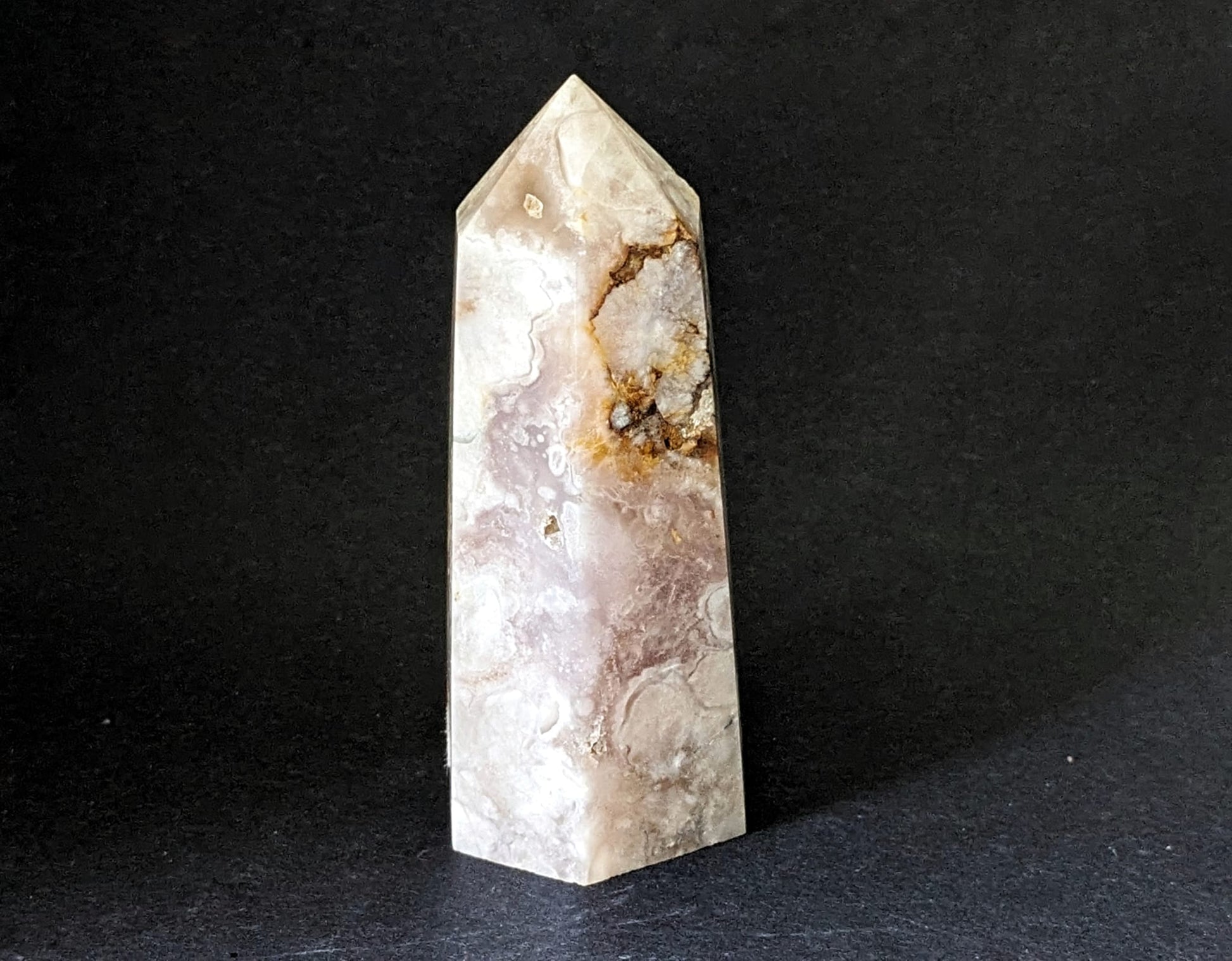 Metaphysically, flower agate is said to symbolise growth and new beginnings. It can be used to support personal transformation and help individuals overcome challenges, particularly during transitional phases of life. This crystal is believed to provide a sense of stability and security. Flower agate is often used to releasing deep-seated emotional wounds and traumas, offering comfort and support during difficult times. This crystal is thought to promote a positive outlook on life and increase feelings of happiness and joy.