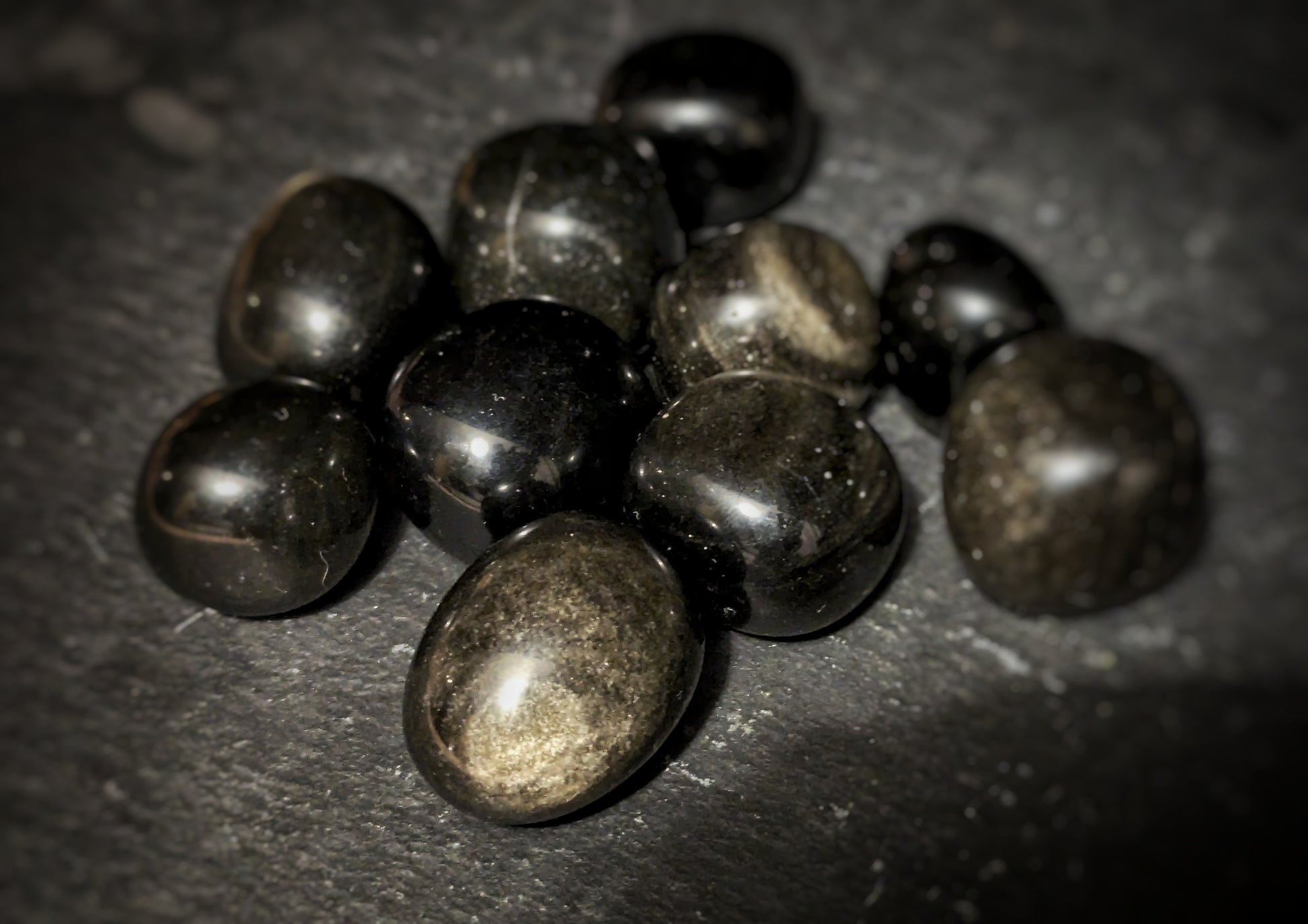 Gold sheen obsidian is a unique variety of obsidian, a volcanic glass, known for its deep black color with golden or iridescent sheen-like reflections. This sheen effect is created by the presence of tiny mineral inclusions, such as magnetite or hematite, within the obsidian.