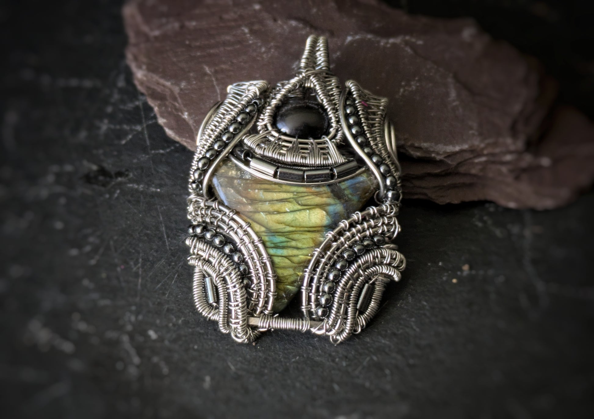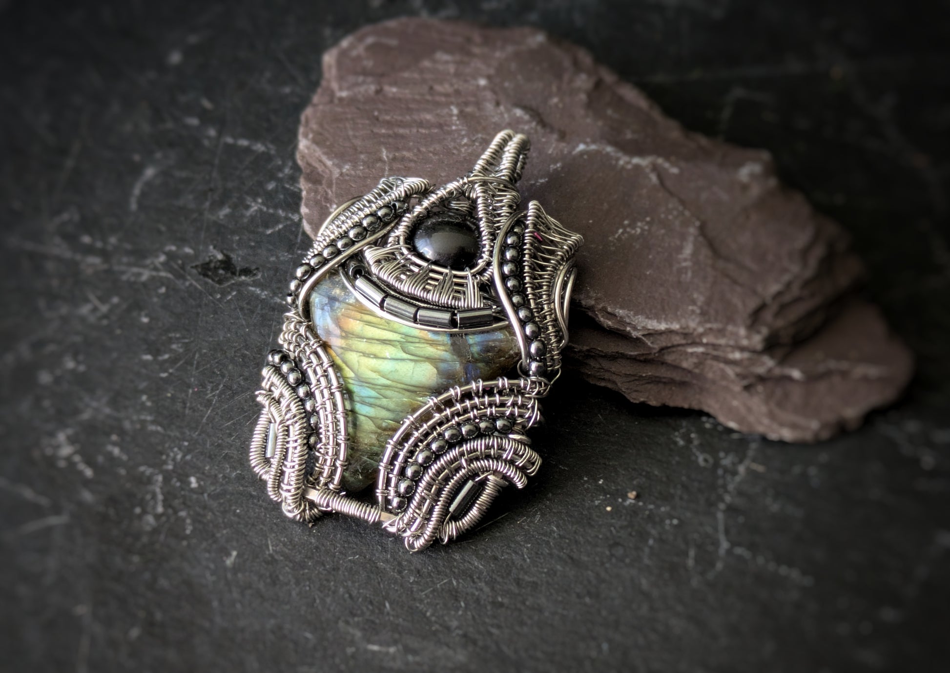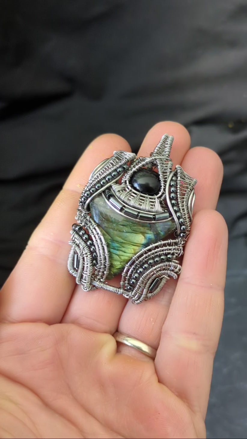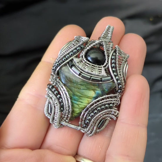 Labradorite And Silver Obsidian Pendant 4