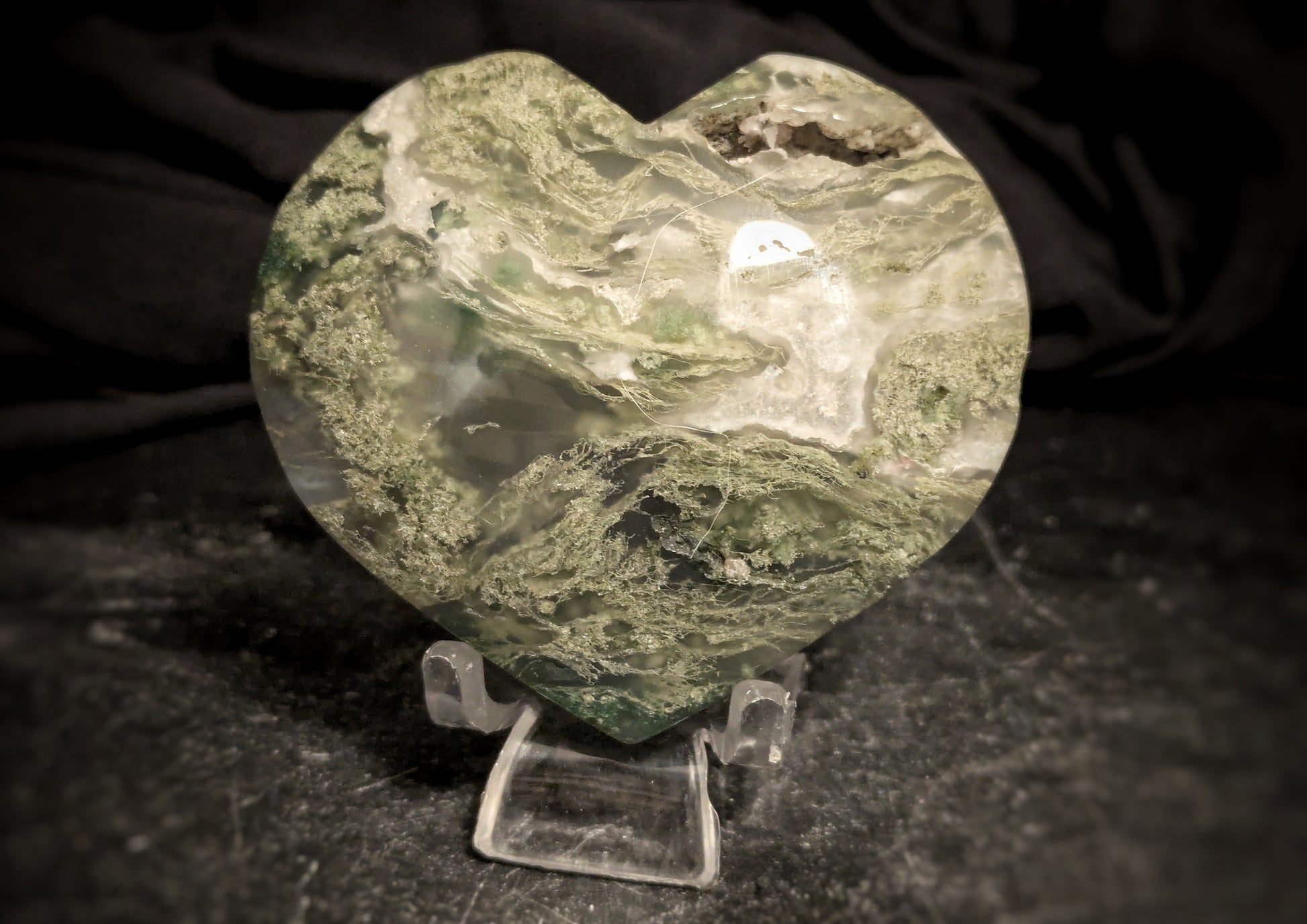 Metaphysically, Moss agate promotes self expression and communication. It is believed to attract abundance, wealth and to improve self esteem.