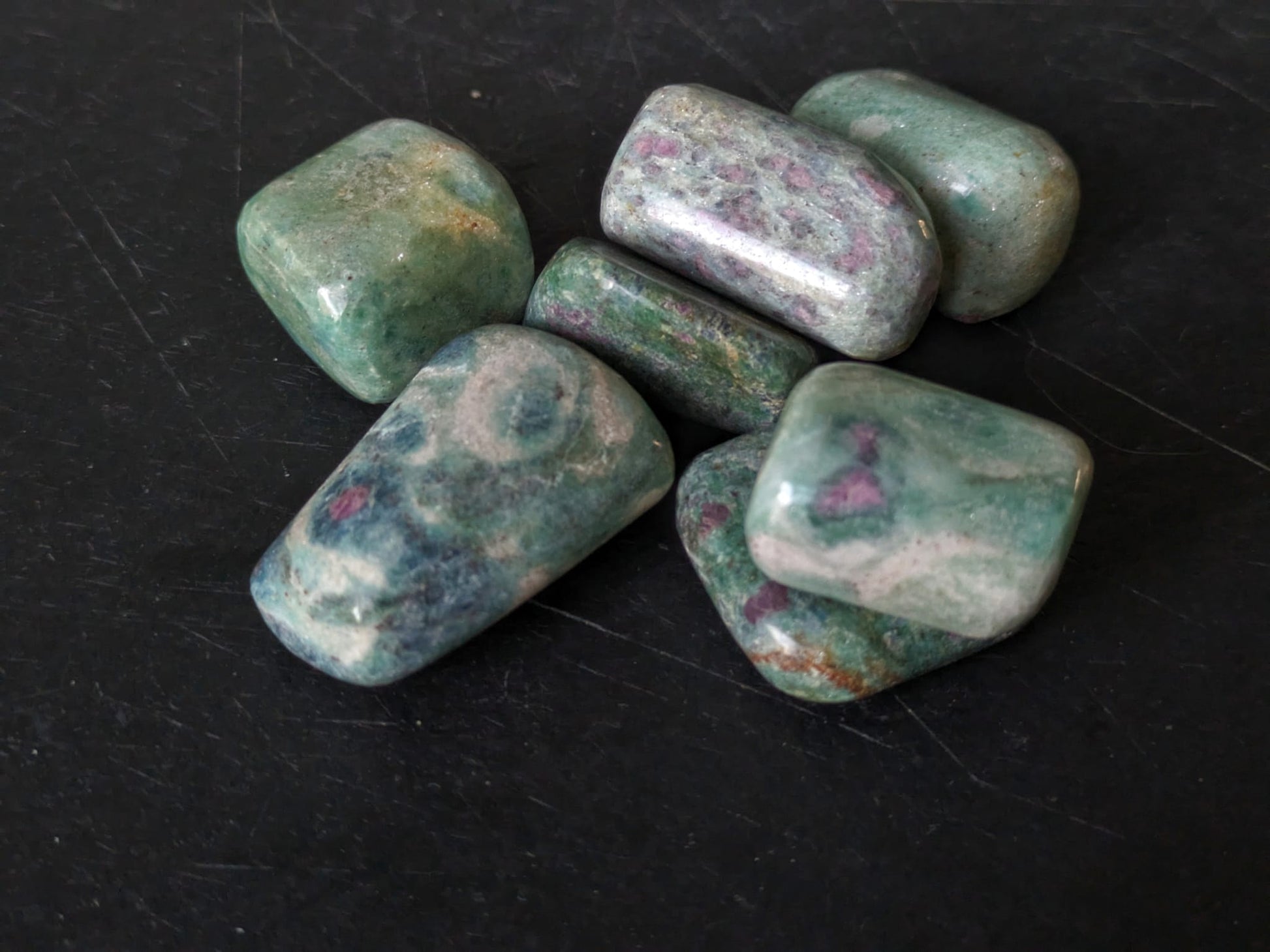 Metaphysically, it is believed ruby in fuchsite offers strong emotional support and self reflection during difficult times. The ruby, which offers endless courage and strength, combined with the relaxing and nourishing vibrations of the fuchsite, will be felt immediately. This crystal will start working to heal your emotional body and relieve all the weight that we carry.