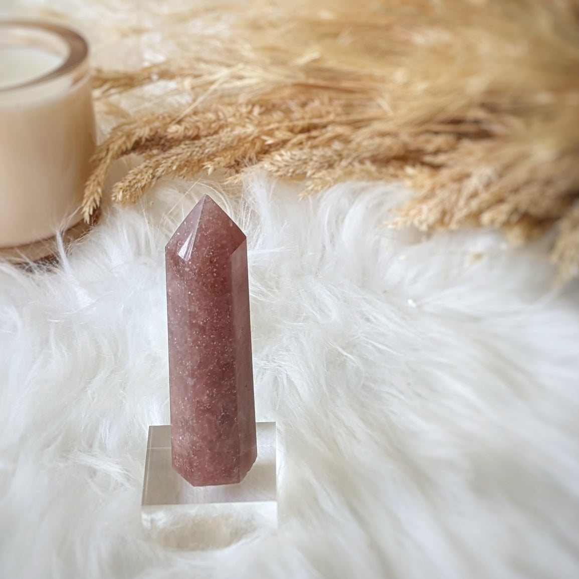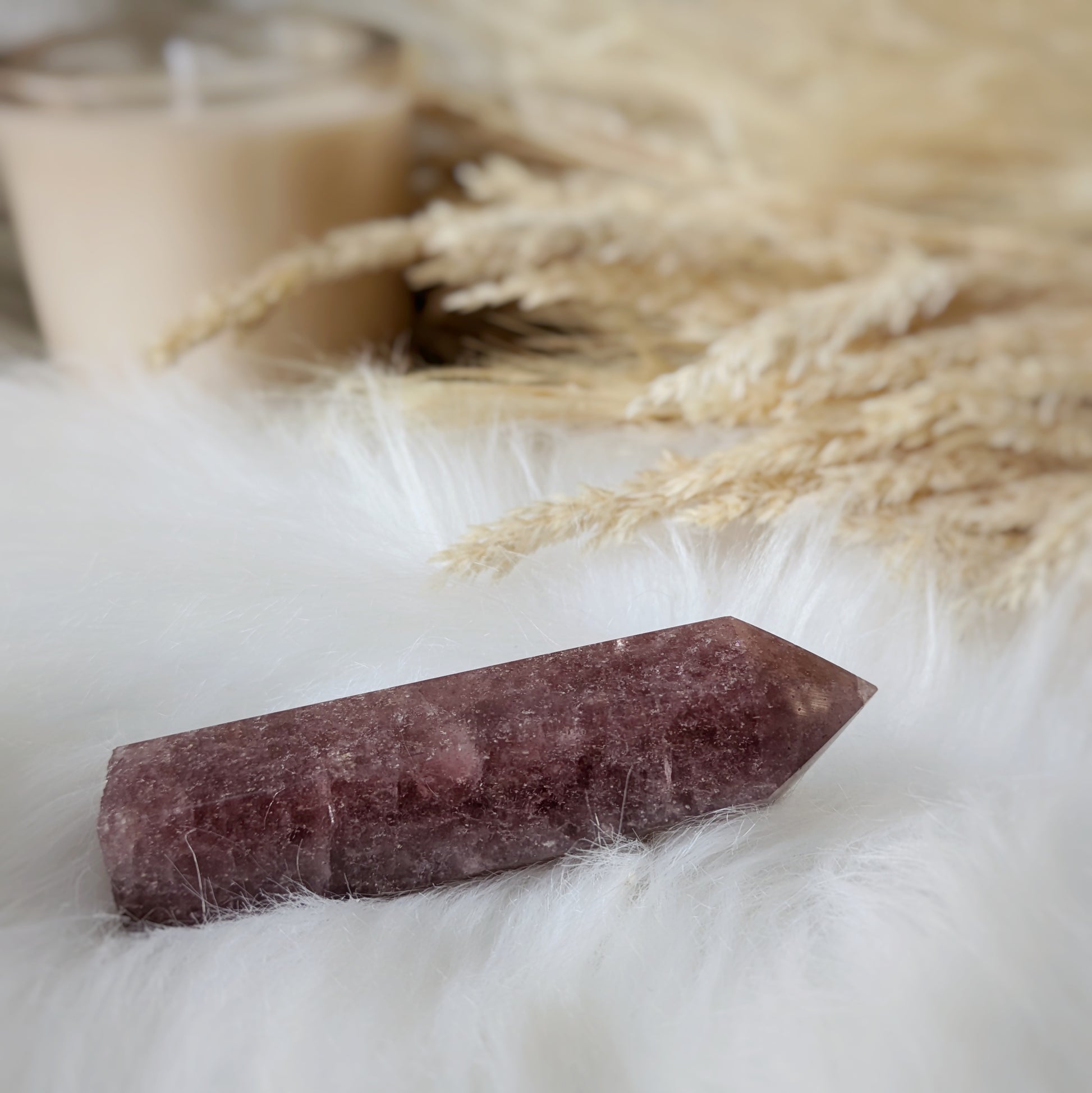 Metaphysically strawberry quartz is often associated with love and emotional healing. It is believed to promote love, compassion, and positive relationships. Some people use it to attract love into their lives or to enhance existing relationships. This gemstone is said to encourage self-love and self-acceptance. It may help individuals appreciate and embrace their own qualities and flaws. Strawberry quartz is thought to have a calming influence on emotions. It may help reduce stress, anxiety, and negative thought patterns, promoting emotional stability. Some individuals use strawberry quartz to enhance their spiritual awareness and connection to higher realms. It is believed to facilitate meditation and promote a sense of inner peace.