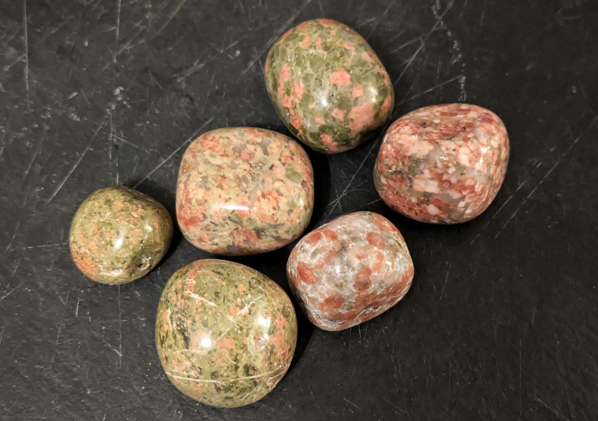 Unakite was first discovered in the United States, in the Unakas mountains of western North Carolina/eastern Tennessee (hence its name). However, it can also be found on the beaches of Lake Superior, where it was originally dragged by glaciers, as well as washed down from the mountains into rivers in Virginia.